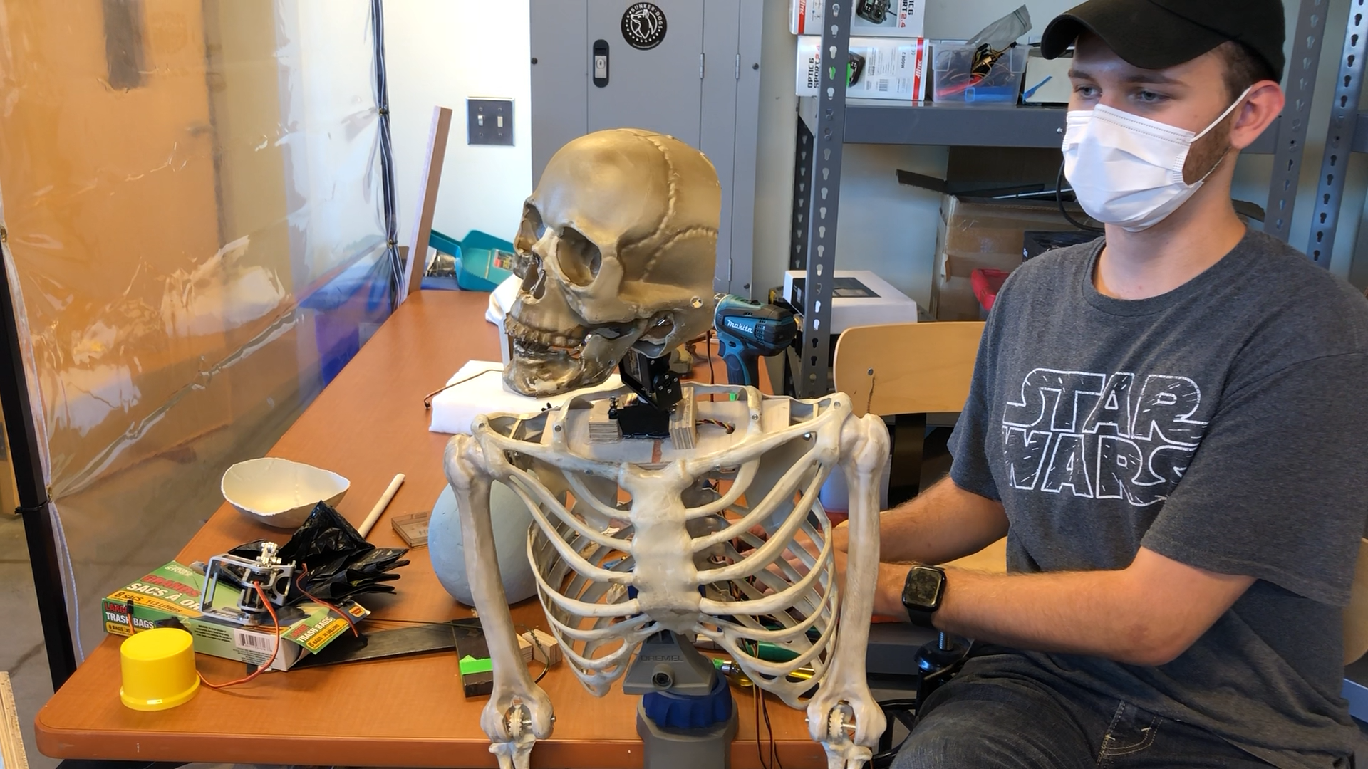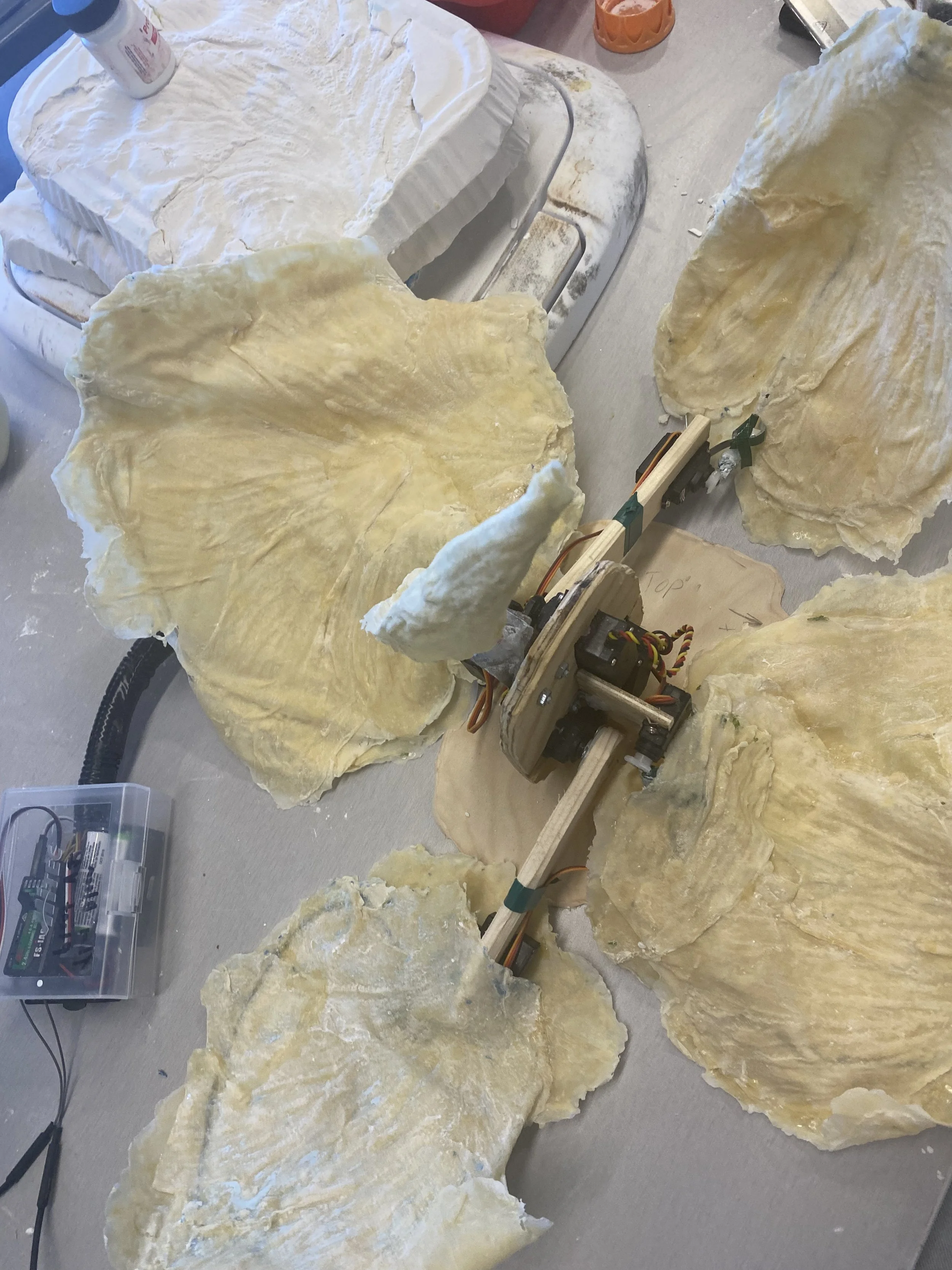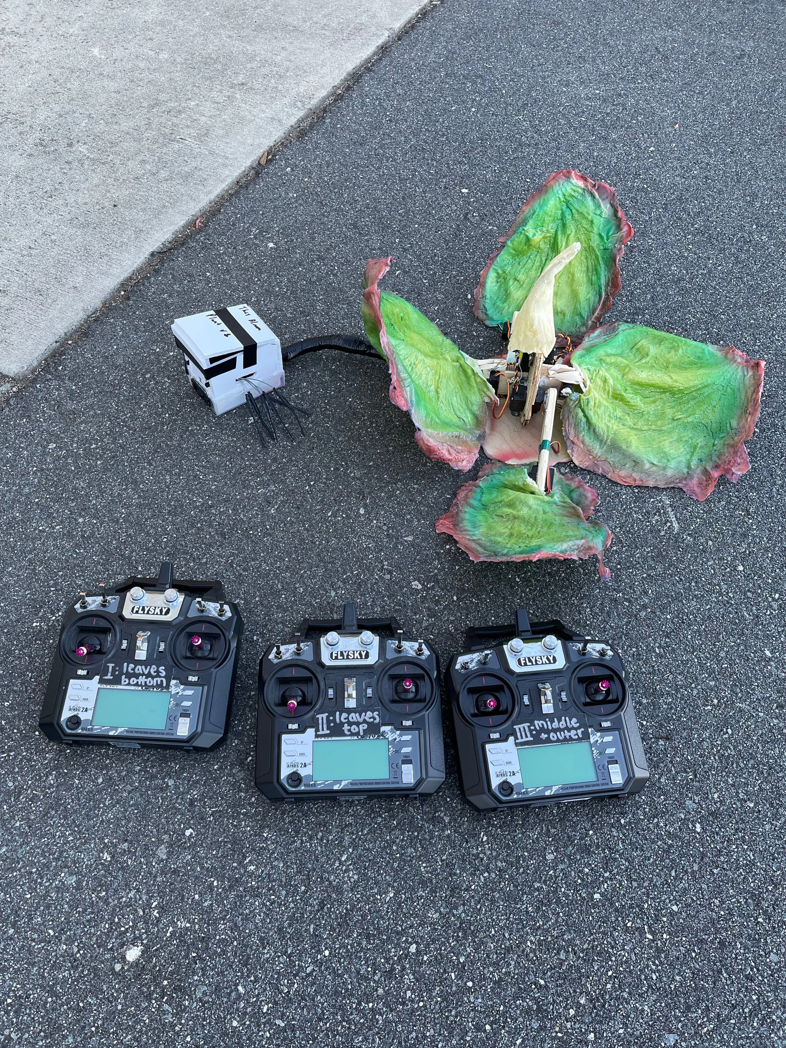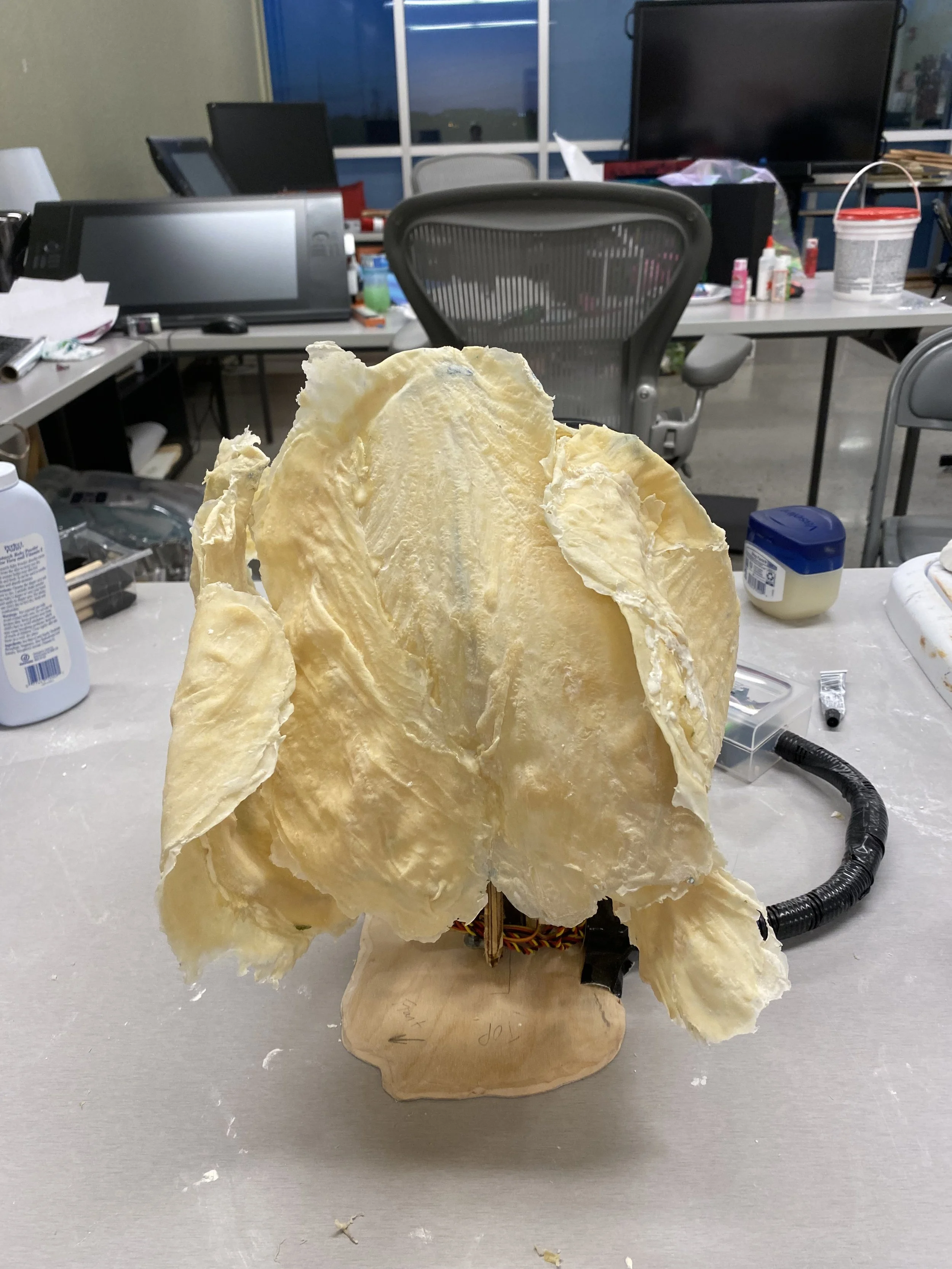 They Bloom and Fade had Lucas and his team build 3 different puppets in order to sell the idea that the plant is growing larger and taking over the house. These plants would combine servos and some pullies to sell all the required motions and actions. All of the skins for the plants was done by the art department.
