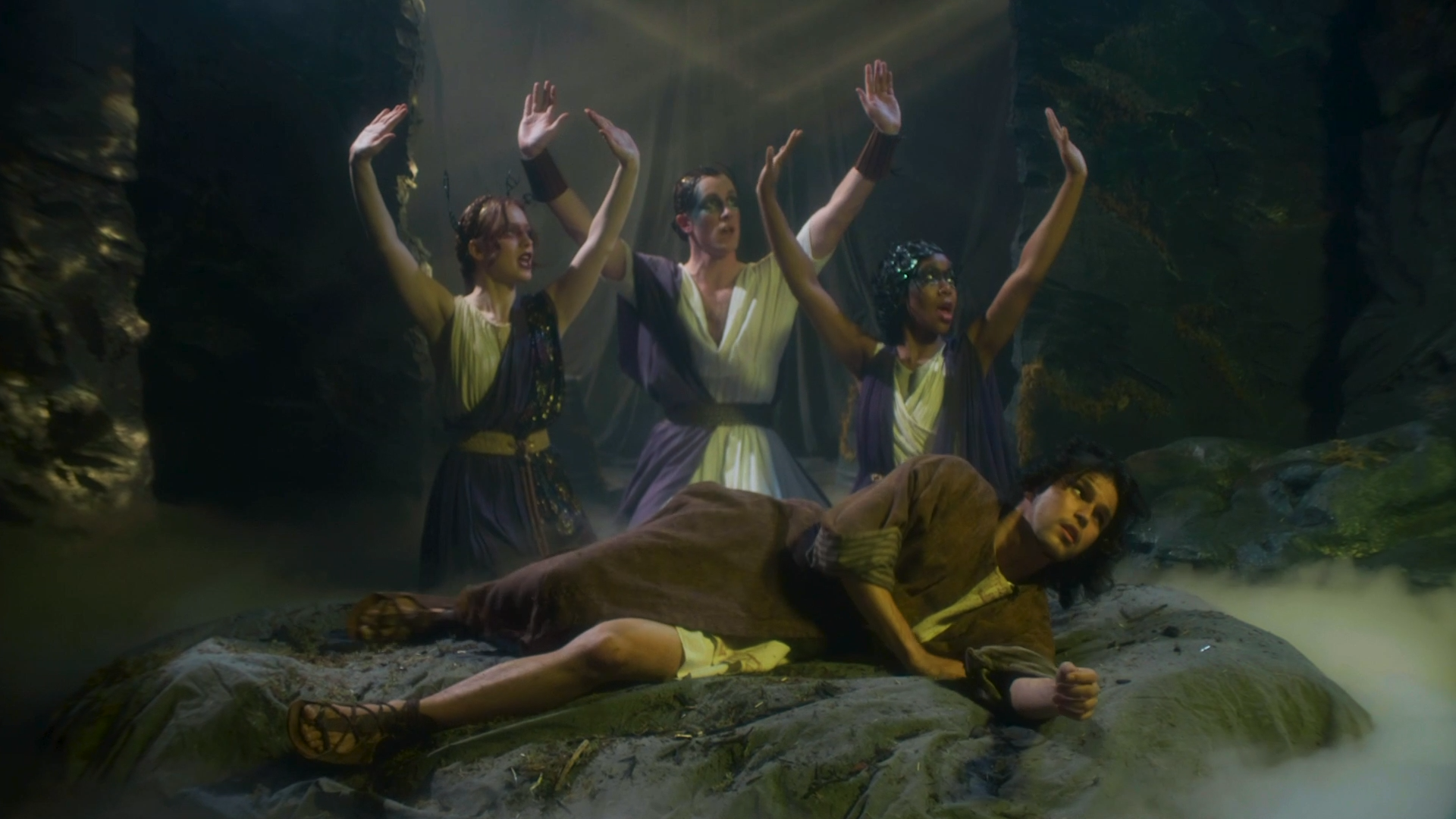 Under the leadership of Bri Lanzen, dry ice fog was used throughout the musical to give the celestial feeling of Mt. Olympus and the grim feeling of the underworld.